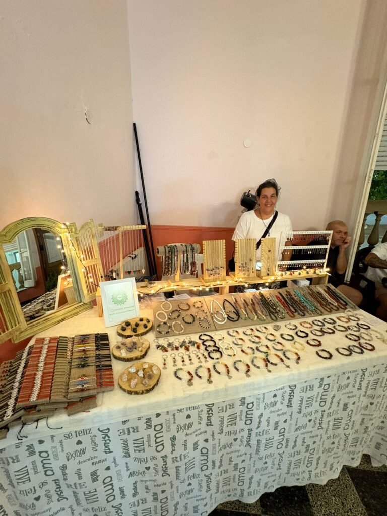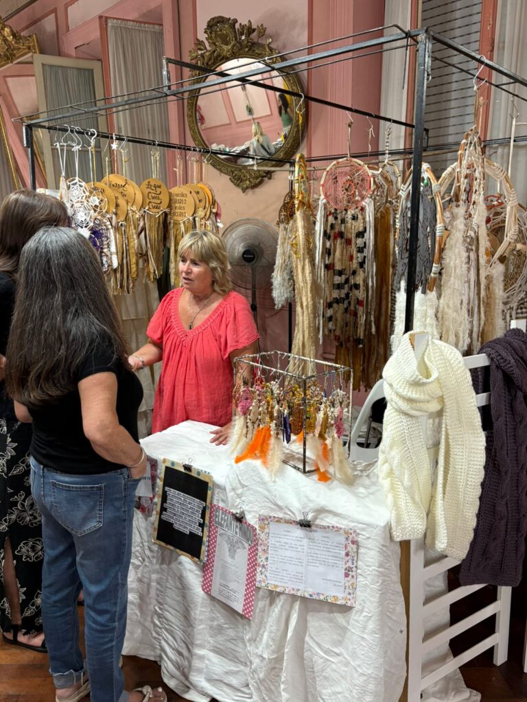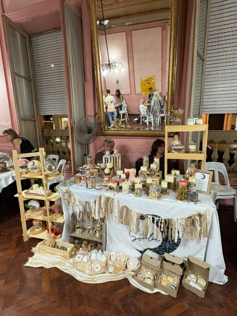 La feria se desarrolló con una destacada participación de emprendedoras y emprendedores locales, ocupando no solo el tradicional Salón de los Espejos, sino también el Salón de Cajas, ubicado en la esquina del edificio, y la galería del Centro de Comercio, que se transformaron en un amplio paseo donde el público pudo descubrir productos originales y de gran calidad.